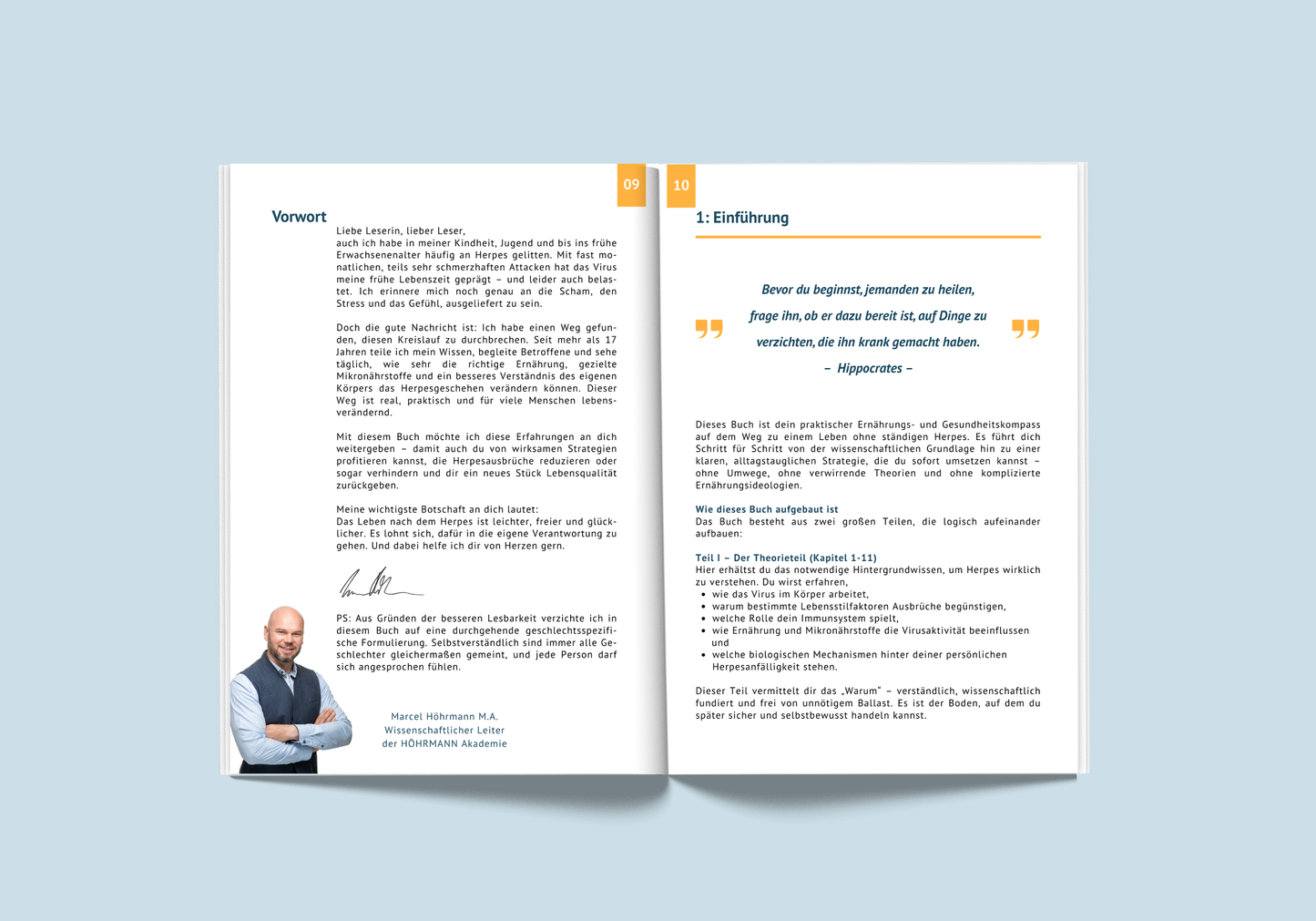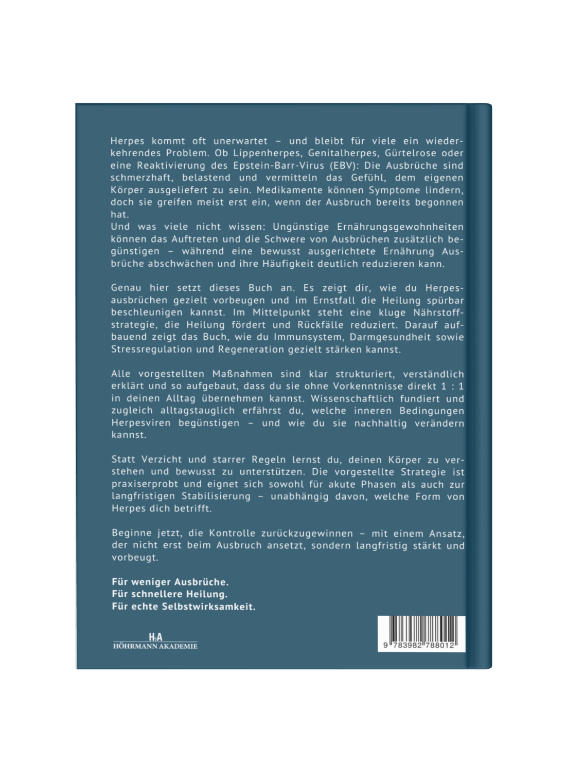„Herpes-Hilfe Ernährung“ ist bewusst als hochwertiges Hardcover mit 284 Seiten, Vollfarbdruck und stabiler Fadenheftung produziert.
